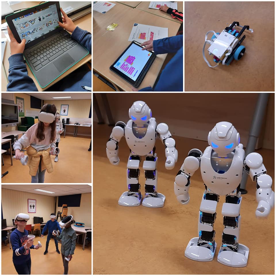 De ‘Technology Tour’ op basisscholen voor groep 7&8 is weer van start gegaan. Collega’s en leerlingen van Ubbo Emmius Maarsdreef, Engelandlaan en Sportparklaan hebben de eerste techniekmiddag verzorgd. De leerlingen gingen met drones vliegen, programmeren met robots en Micro:bits, een sleutelhanger maken met een lasersnijder en ervaren hoe een VR-bril werkt. De leerlingen en begeleiders waren ontzettend enthousiast. De komende tijd staan er nog vele middagen op basisscholen gepland. De Technology Tour is onderweg!