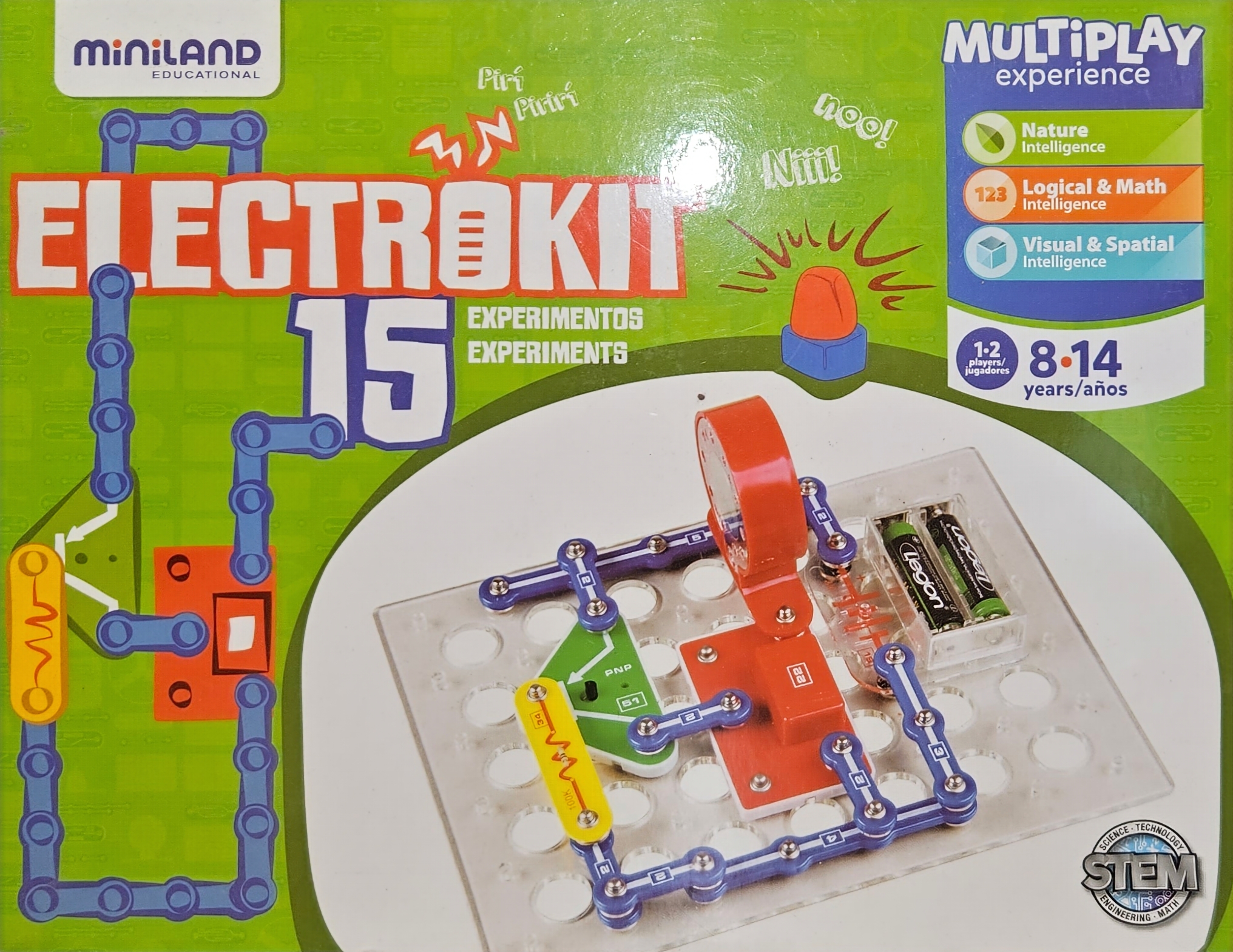 Met de Miniland Elektrokit 15 experimenten leren kinderen elektrische circuits te bouwen.